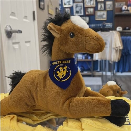 Meet your new cuddly companion, proudly sporting a Mulerider bandana for the perfect blend of school spirit and snuggly charm.