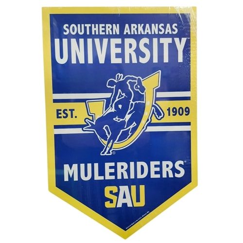 Bold and built to stand out, this 11” x 17” wooden sign features Southern Arkansas University Muleriders branding with vibrant blue and gold detailing and the established 1909 mark. A strong statement piece for any space that represents dedication, tradition, and competitive spirit.